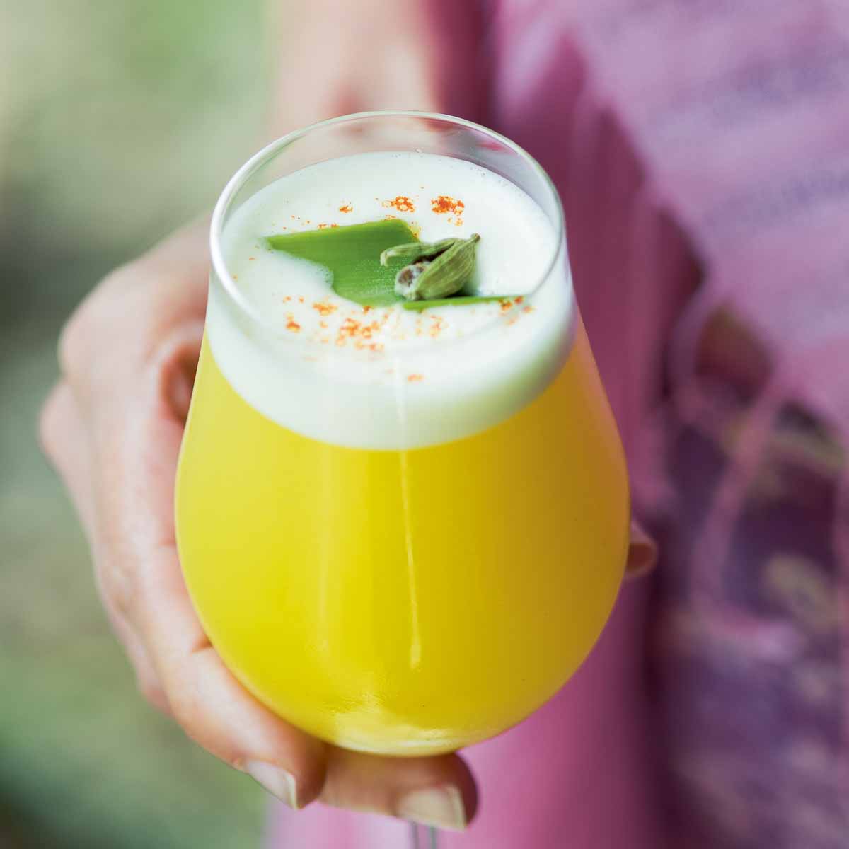 Dieses Rezept für Verdauungsnektar mit leicht würziger Kräuternote strotzt geradezu vor natürlichen Enzymen und beruhigenden Bestandteilen. Er unterstützt und stärkt die Verdauung und die Hautgesundheit. Dieser Trank mit Zimt, Kardamom und den Enzymen der frischen Ananas und Kokosnuss bringt Sie garantiert in Schwung. Wie ein Pina Colada, nur ohne Alkohol und viel aromatischer.