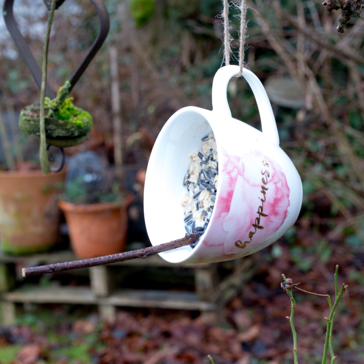 Für alle Vogelliebhaber:innen (und Tassensammler:innen) ist die Vogelfuttertasse ganz besonders empfehlenswert. Alte Tassen werden mit einer Mischung aus Kernen, Haferflocken und Kokosfett gefüllt und fertig ist die plastiklose Alternative zum Meisenknödel, die ganz nebenbei auch optisch wirklich richtig was hermacht! Aufgehängt werden sollte die Vogelfuttertasse im Schatten damit das Fett bei Sonne nicht schmilzt.