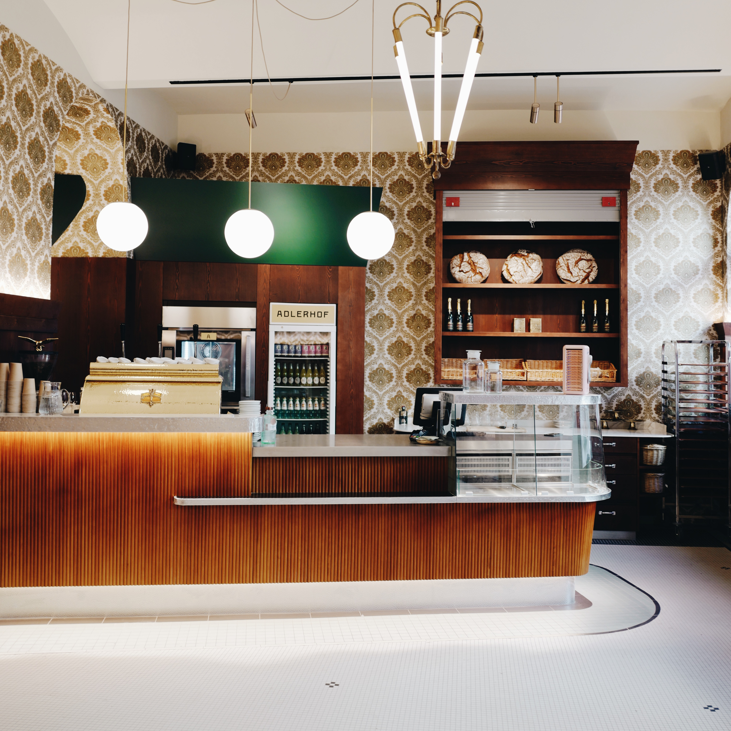 Mehr Süßes gibt es aus der hauseigenen Patisserie. Die große Auswahl (von Streuselkuchen bis hin zu kunstvollen Törtchen ist alles dabei), macht den Adlerhof zum idealen Spot auch für die nachmittägliche Kaffeepause. Abends lockt die Karte mit Suppen, Salaten und Comfortfood (Knödel, Gulasch und Risotto!). Dazu gibt’s Drinks und Weine.