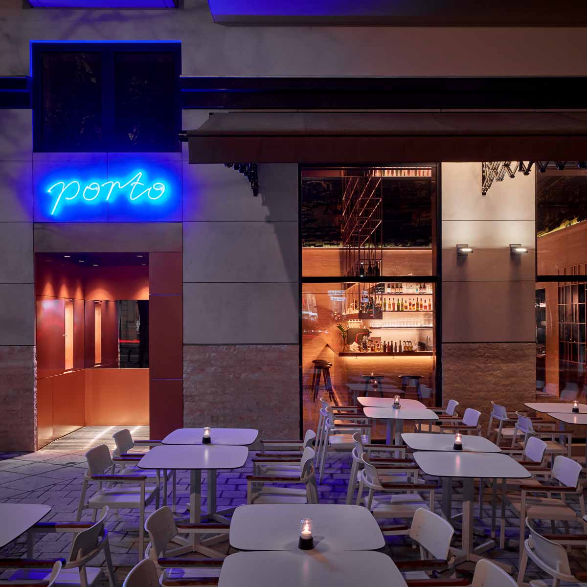 Alle Gerichte sind dekorativ angerichtet und die perfekte Ergänzung zum Angebot der Bar – das Herzstück des Restaurants und der perfekte Ort für einen Aperitif und eine Portion köstlicher Oliven. Beim Verlassen des Bistro Porto werfen wir noch einmal einen Blick in den Spiegel am Eingang und schauen in durch und durch zufriedene Gesichter. Die selbstbewusste Neonreklame hat nicht zu viel versprochen.