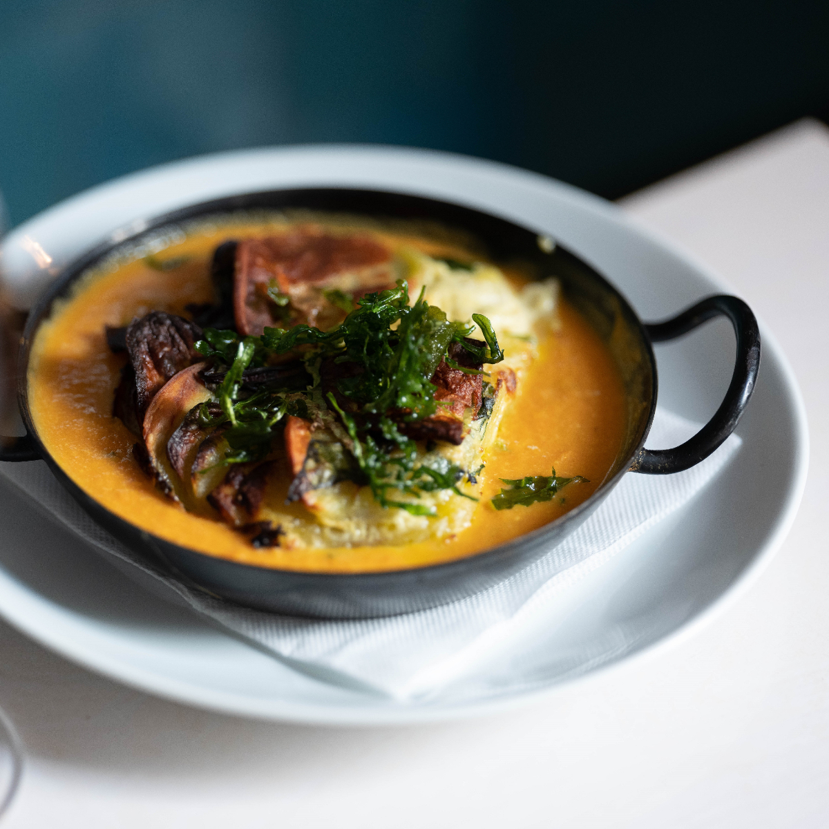 Klassische Eierspeisen stehen ebenfalls auf der Karte, etwa die im Pfännchen servierte Grünwiese mit Spinat und Feta. Wer es herzhaft mag, sollte sich an Camilla & Charles (Bacon, Ei und Bohnen) halten, für Süße gibt’s Gebäck und Joghurt. Mein Frühstücks-Dessert besteht aus weichem Hausbrot mit selbstgemachtem Schoko-Nuss-Aufstrich.