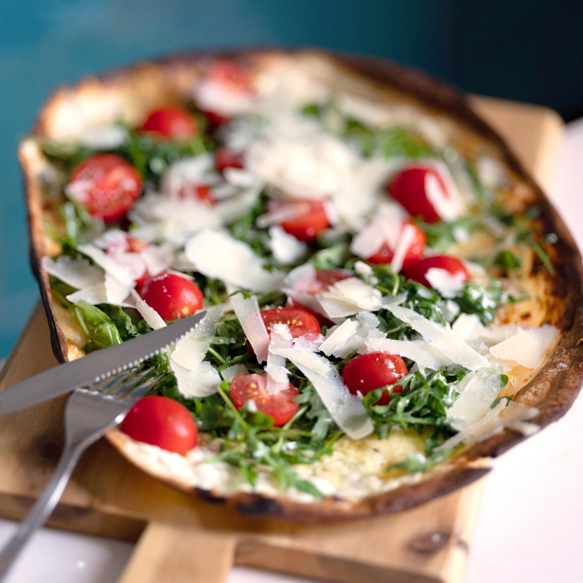 Wahlweise dem Regen zuschauen, der draußen auf den Asphalt prasselt oder die Sonne genießen, die ins Innere fällt. Die Einrichtung des Café Menta ist eine Mischung aus Flohmarkt und Industrie-Chic, dazu reichlich Grünpflanzen – Wohnzimmer-Flair eben. Wie zu Hause ist die Küche (fast) niemals zu.