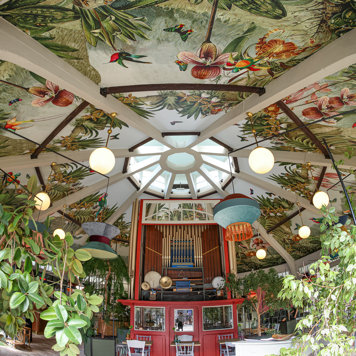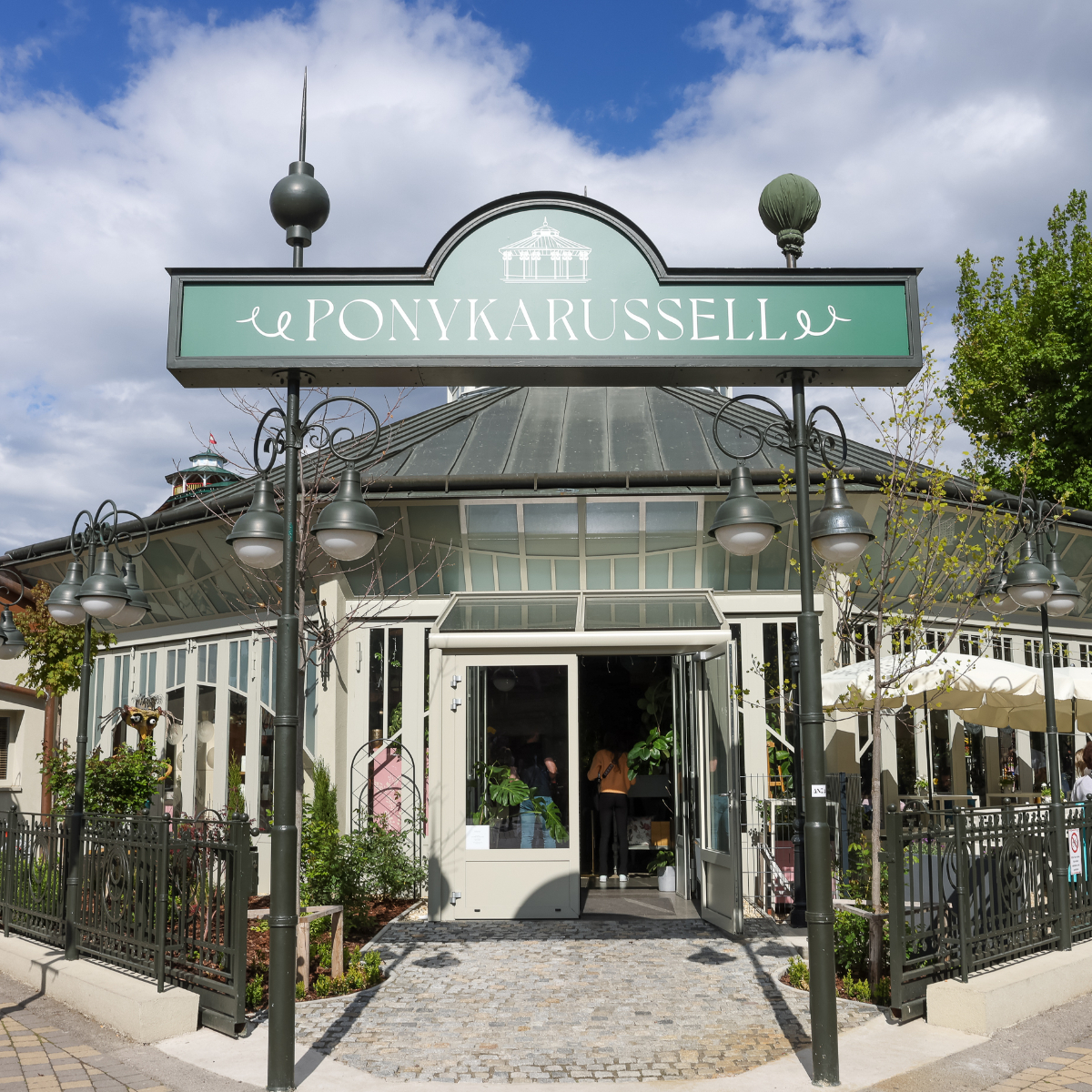 Unter ihrem wachen Blick wurde mitten im Prater gegenüber vom Schweizerhaus halb Dschungel, halb Karussell und ein klein wenig Genuss-Lasterhöhle erschaffen, denn so beschreibt sich das 2021 eröffnete Café Ponykarussell im Originalkuppelbau von 1887. Im neuen Glanz erstrahlt, erkennt man sofort, dass hier Genussmenschen ihre Hand im Spiel haben. Blumen, Deko, Bodenfliesen, neu trifft auf alt und wird ergänzt mit edlem Design und bunten Farben.