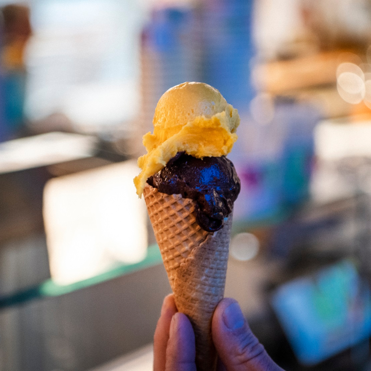 Tagsüber gibt es dort hausgemachtes Eis aus Bio-Milch und fruchtige Sorbets. Ab dem späten Nachmittag kommen die Cocktail-Shaker zum Einsatz: Neben leichten Sommerdrinks und Klassikern wie Mojito und Co. werden auch besagte Eis-Cocktails serviert: Zum Beispiel eine „Cold Chocolate“ – gemixt aus Schoko- und Haselnusseis samt Kaffeelikör und Rum.