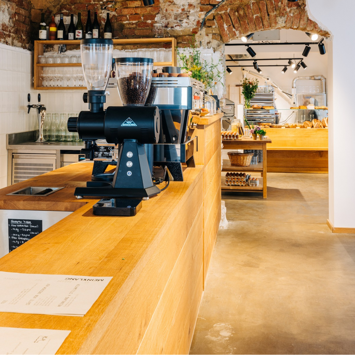 In schlichten Holzkisten liegen dort farbenfrohe Rüben, kugelrunde Zucchini, Fenchel mit stolzem, buschigem Haupt und Salate in wunderschönen Grünschattierungen. Das hauseigenen Getreide wird im Keller frisch gemahlen und in der offenen Backstube zu Sauerteigbroten, hauchdünnem Knäckebrot, Focaccia und süßen Teilchen verbacken. Ein Traum die Vanilleschnecken und die mit Creme und Beeren gefüllten Profiteroles.