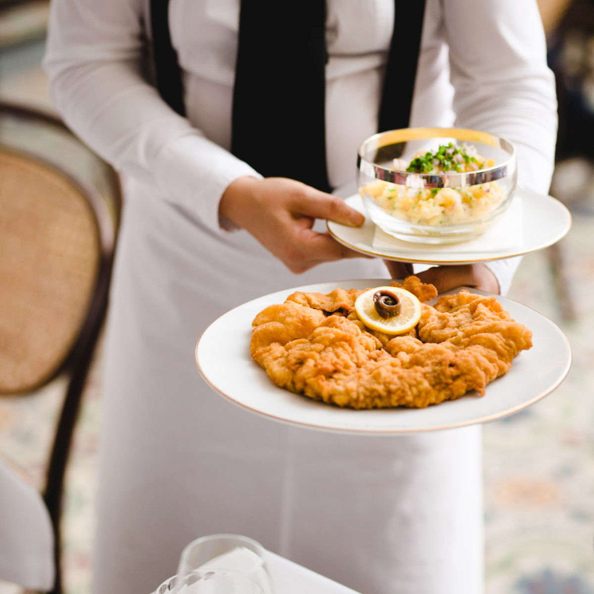 Zu Beginn des vergangenen Jahrhunderts trafen sich im Meissl & Schadn Feinschmecker*innen aus ganz Wien zu Schnitzel und Tafelspitz. Vor einigen Jahren erwachte das legendäre Restaurant in neuem Gewand. In mondänem, mit klassischen Details gespicktem Ambiente wird hier die Wiener Küche zelebriert. Ein Erlebnis für den Gaumen und – dank offener Schnitzel-Schauküche – auch für die Augen.