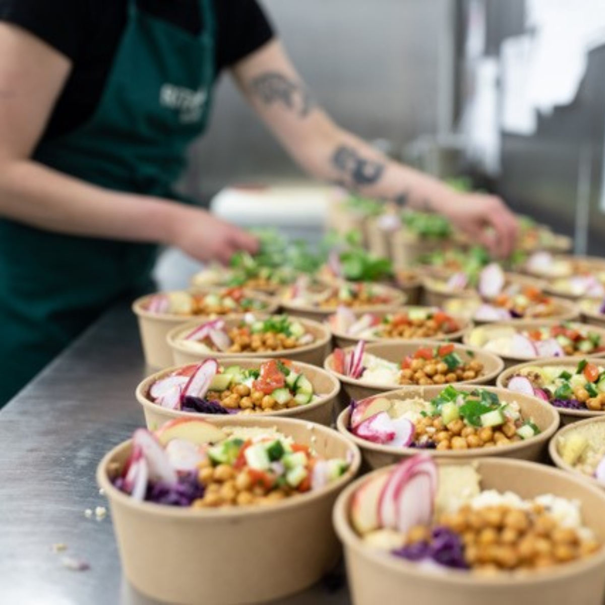 Einerseits ist das umweltbewusst: schonender Umgang mit Ressourcen, Produzent:innen und Lieferant:innen aus der Region, alle Produkte nur aus biologischer Landwirtschaft, produziert wird nur was bestellt wird und was übrig bleibt wird zu Pesto, Chutney, Aufstrich oder Marmelade verarbeitet.