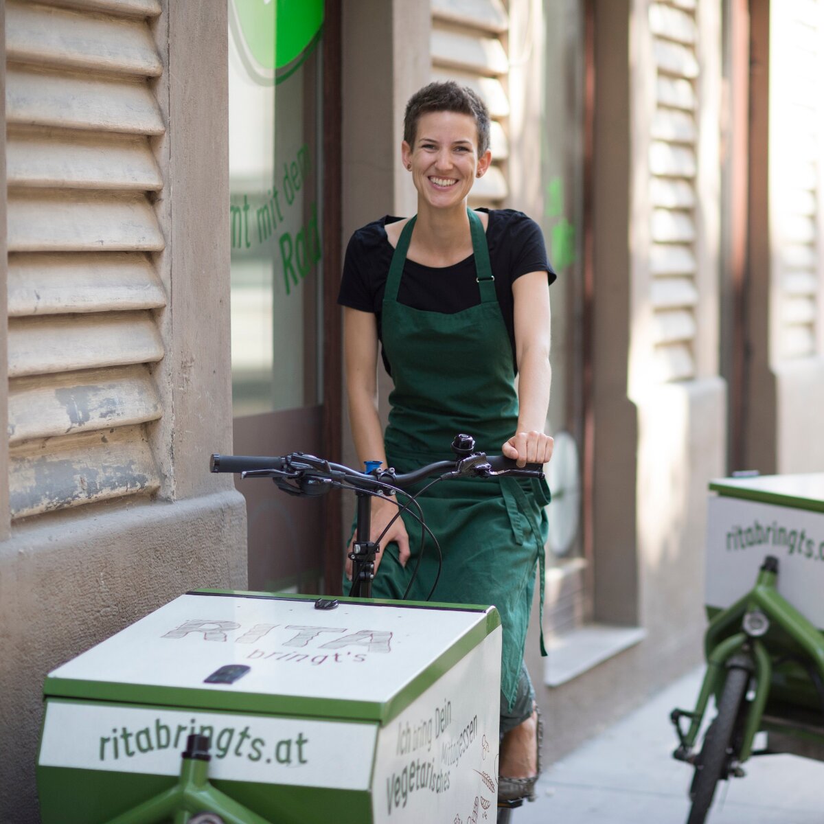 Hinter Rita bringt´s steht ein dynamisches Duo: Rita Huber ist leidenschaftliche Köchin und Wirtin und Gerald Költringer, Gründer von Autogott, Design und Webentwicklungsspezialist. Er meint: „Immer mehr Menschen achten beim täglichen Einkauf auf heimische Bio-Zutaten, aber sobald man in einem Lokal essen geht, oder zubereitete Speisen im Supermarkt kauft, weiß man meistens nicht, woher die Zutaten stammen. Bei Rita bringt‘s verwenden wir 100% Bio-Zutaten, soweit es möglich ist aus Österreich. Die Logistik per Lastenrad ist die logische Konsequenz.”