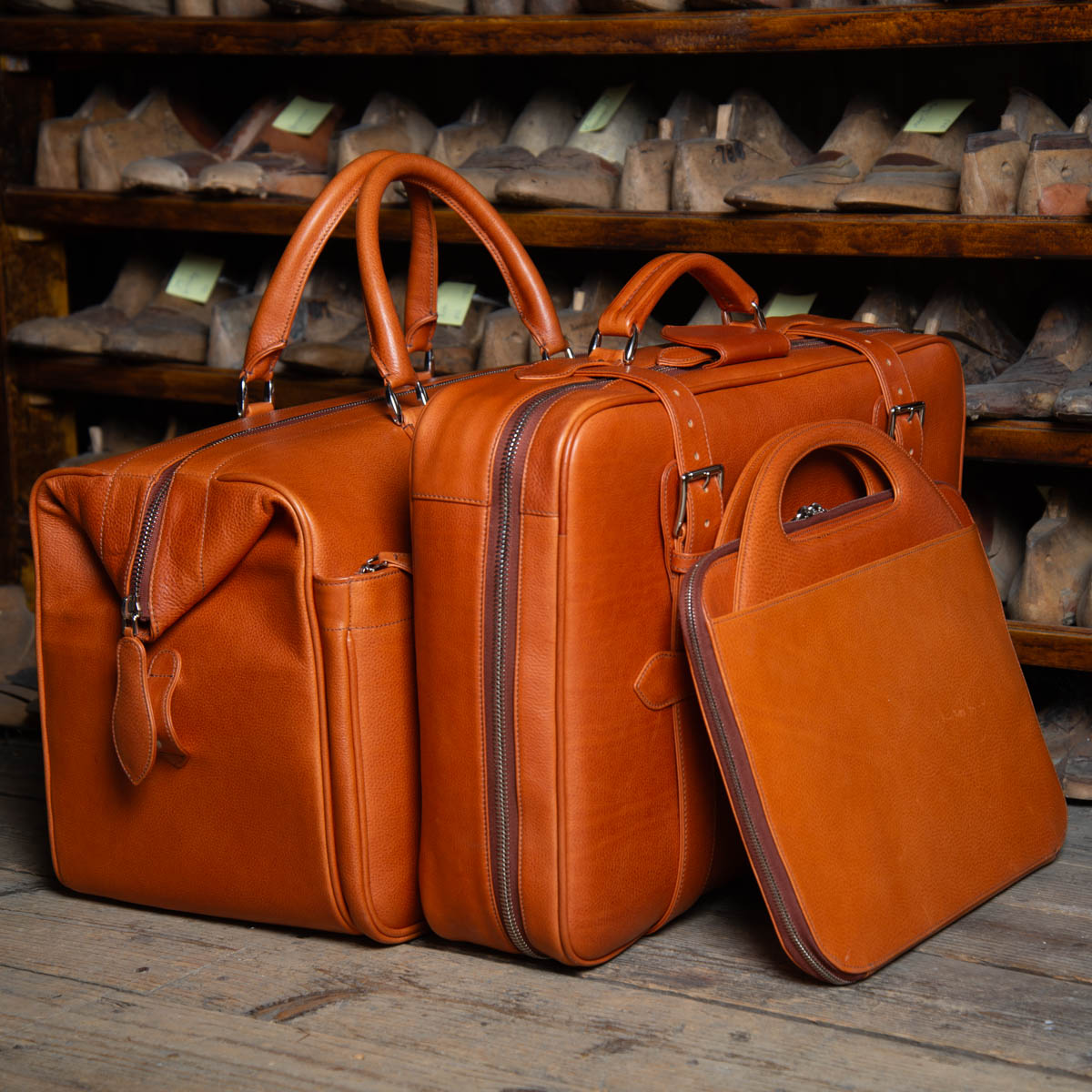 Gürtel gibt es auch nach Maß, zudem einen ledernen Accessoire-Reigen „to go“, also fix und fertig zum Mitnehmen, von Armbändern über Schlüsselanhänger und Geldbörsen bis zu Taschen, auch Laptoptaschen in sanftem Blau und Orange, und Koffer. Eine der Herbst-Trendfarben ist Bordeaux – und was offeriert Scheer? Eine Totebag in eben dieser wunderschönen Farbe.