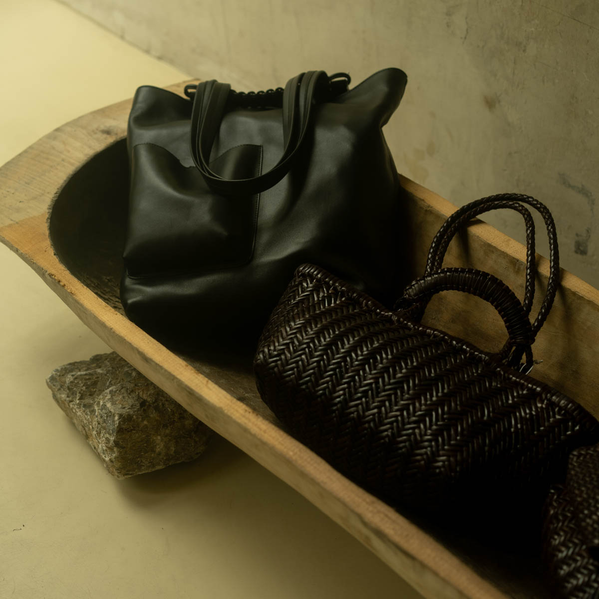 „The Beauty of Everyday Things“, das Buch von Soetsu Yanagi steckt nicht zufällig in der Außentasche der schwarzen "Nasch Bag". Der japanische Philosoph und Ästhet ruft uns darin auf, die Beziehung zu den uns umgebenden Objekten zu vertiefen, wenn sie denn in sorgfältiger Handarbeit hergestellt wurden.