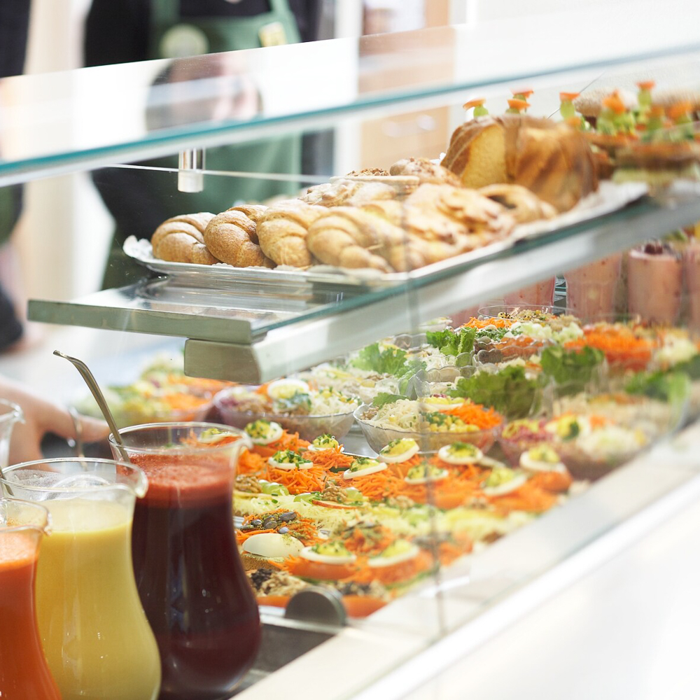 Die Produkte kann man aber auch gleich vor Ort verkosten. Denn Staudigls Küche serviert gesunde Naturkost in vielen Variationen. Ich komme angesichts des herrlich-frischen Spargeldufts nicht an der Spargelcremesuppe vorbei. Dazu gibt es frisches Vollkornbrot und einen der diversen, täglich wechselnden, frisch gepressten Säfte. Gesund und lecker! Von der Theke lachen mich noch viele weitere gesunde Snacks wie Gemüse-Sandwiches, Salate und Burger oder Süßes wie Müsli, Kuchen und Vollkornmehlspeisen an.