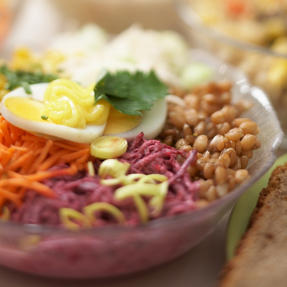 Dass der gesunde Mittagstisch beliebt ist, kann ich gut verstehen. Viele kommen nur noch vorbei, um ihr telefonisch vorbestelltes Essen abzuholen. Es herrscht reges Treiben und dennoch liegt diesem Ort eine gewisse Ruhe inne. Während ich mir mein Essen schmecken lasse, schweift mein Blick über das riesige Angebot an natürlichen, gesunden Köstlichkeiten. Ich spüre, wie mich die Suppe an diesem launischen Apriltag wohlig von innen wärmt und bekomme richtig viel Lust auf Gesundheit. Ich verspreche mir, besser auf mich zu achten, mir mehr Zeit für mich zu nehmen. Streichle ich vielleicht gerade meine Seele?