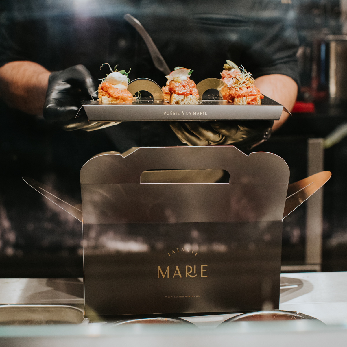 All dies gibt es auch zum mitnehmen. Dank eigens entwickelter Verpackung können auch die Tatar-Stückchen heil nach Hause gebracht werden. Ach ja: Besteck (für all jene, die sich mit dem „beherzt reinbeißen“ schwer tun) gibt’s auch.