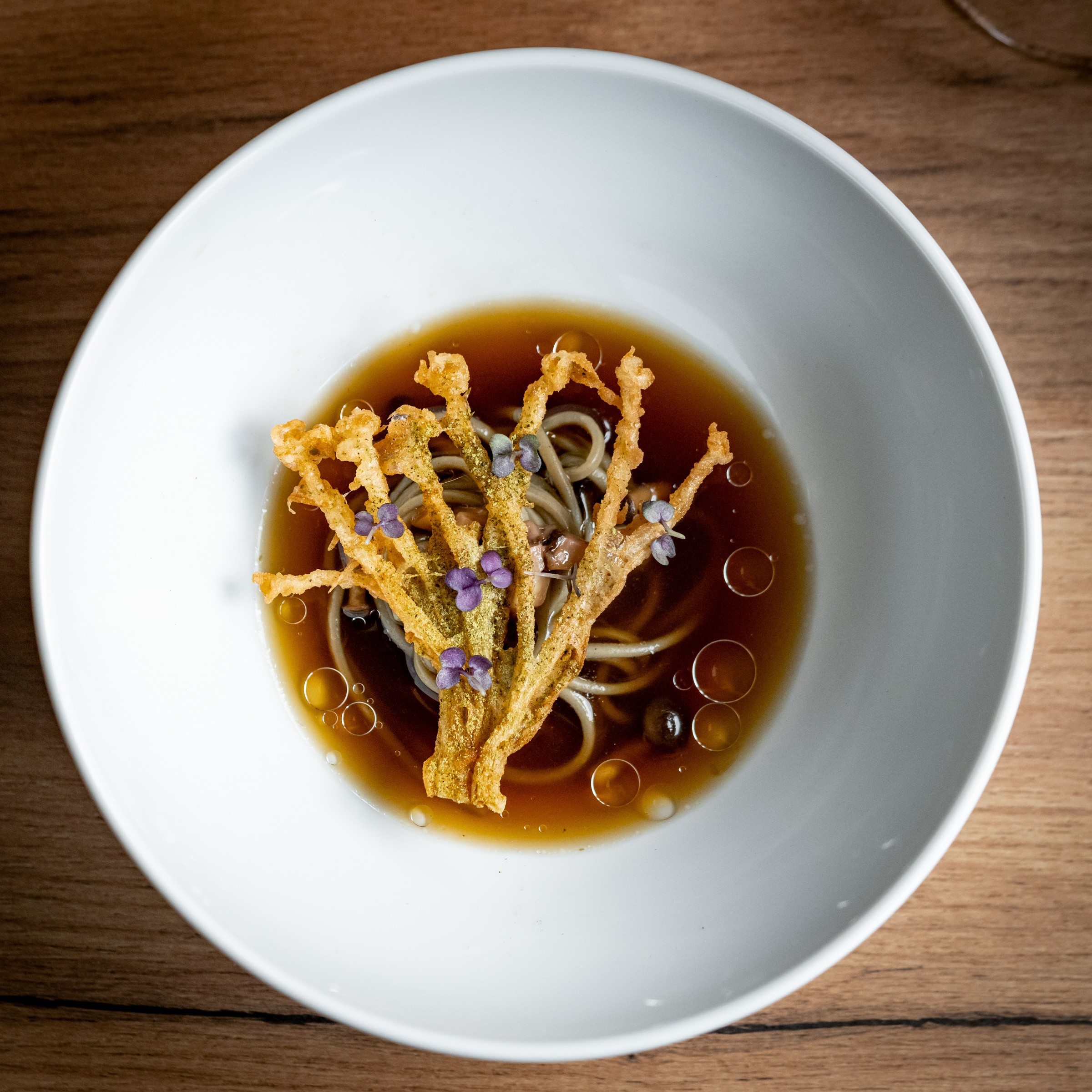 Recht hat sie. Auch das Dessert ist eine geschmackliche Wundertüte: Geräucherte weiße Schokolade mit Soja-Karamell und Beerensorbet. Ungewöhnlich, passt aber unglaublich gut zusammen. Angesichts der überraschenden Kombinationen blickt man gespannt auf die kommenden Monate. Die Ideen, soviel ist sicher, werden dem weitergereisten Duo mit Sicherheit nicht ausgehen.
