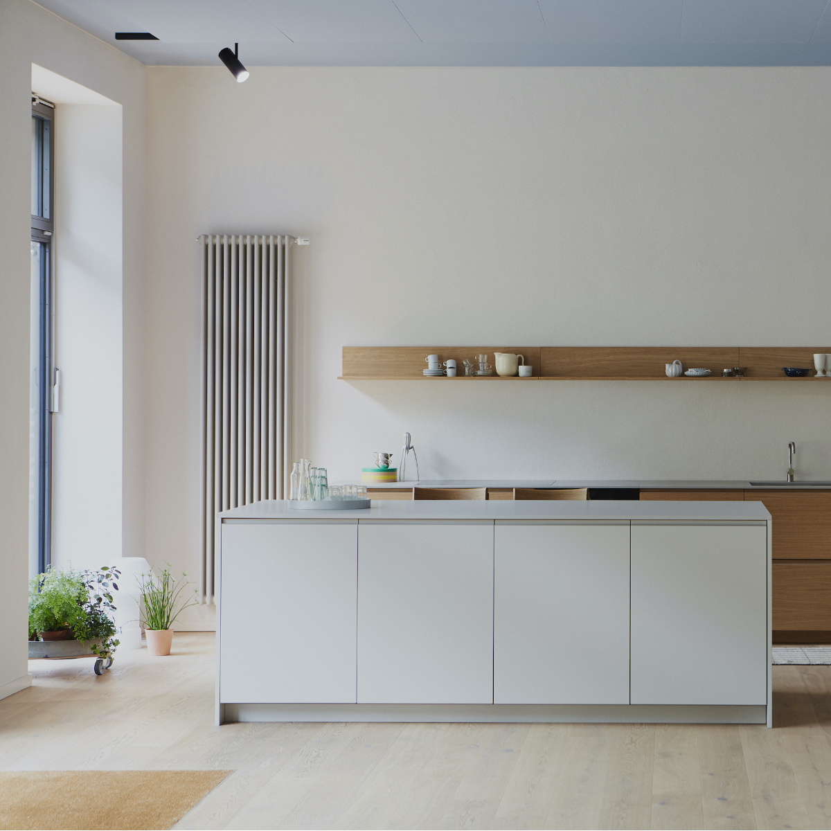 Angefangen hat es damals mit dem Design Basis. Es ist der Inbegriff skandinavischen Minimalismus und erinnert an die klassische Architektenküche der 60er Jahre. Das zeitlose Design, ihre warme und weiche Optik und nicht zuletzt die schier endlosen Auswahlmöglichkeiten – es gibt allein fast 2000 NCS-Farben zum Lackieren in der Auswahl – das mache Basis bis heute zum absoluten Reform-Bestseller. Michael habe sie zuhause in Kopenhagen in einem bläulichen Pastellton.