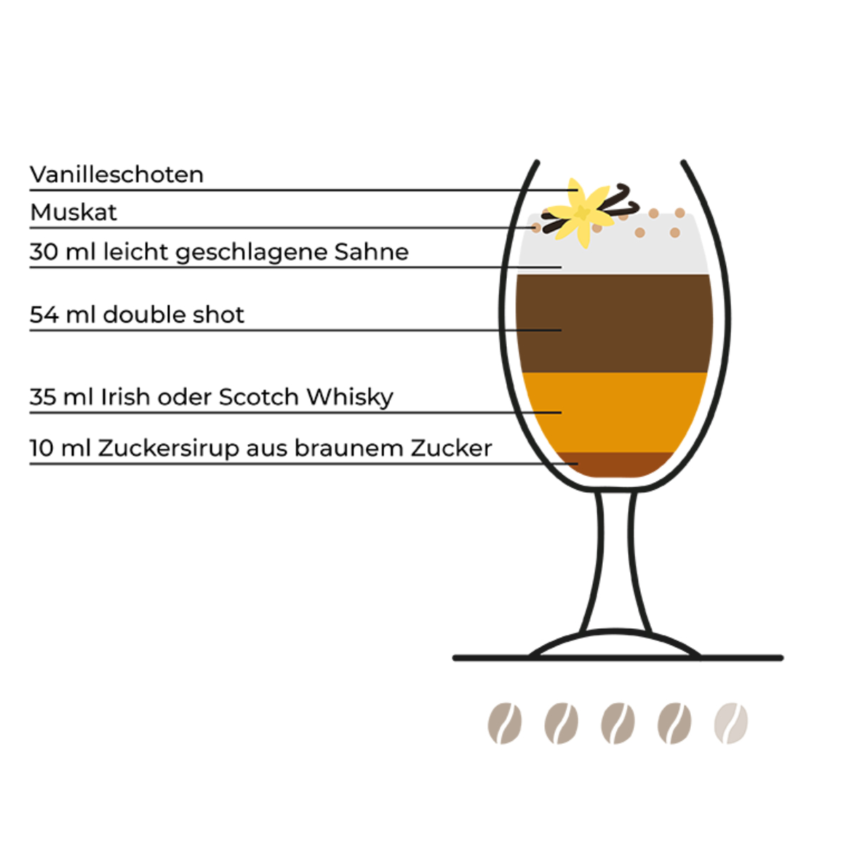 Diese Kaffeespezialität ist zwar schon altbekannt, erfreut sich aber dennoch stets großer Beliebtheit, weshalb sie auf der Liste der Kaffeetrends 2021 nicht fehlen darf: der Irish Coffee. Das Heißgetränk besteht aus Zuckersirup, einem Schuss Irish oder Scotch Whisky, einem doppelten Espresso und obendrauf etwas geschlagene Sahne – ein zeitloser Klassiker!