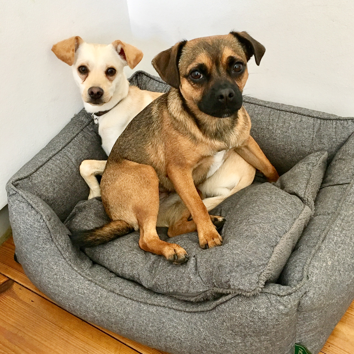 Pino ist zu Besuch. Doppelpackung Hunde. Zwei Leinen in der Hand, zwei hungrige Mäuler und vierfache Action. Die Eltern von Pino, gute Freunde von uns, wollten mal Urlaub ohne Hund machen. Natürlich haben wir uns angeboten, auf Pino aufzupassen. War auch nur für ein paar Tage, Donnerstag bis Montag. Easy. Hertha und er kennen sich schon und verstehen sich gut. Ein schöner Test für ein Leben mit zwei pelzigen Mitbewohnern.