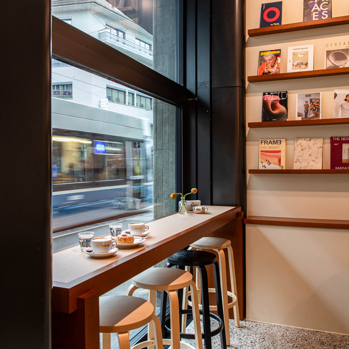 Die jüngst im Februar eröffnete dritte Filiale im Wiedikon etwa bietet neben Gaumenfreuden auch reichlich Schönes für's Auge. Innenarchitektin Hanya Leo ließ sich von der Geschichte des NZZ-Hauptgebäudes inspirieren und schuf mit Terrazzoböden, Linoleum-Tischen sowie der langen, geschwungenen Theke aus Glasbausteinen ein modernes wie einladendes Lokal.