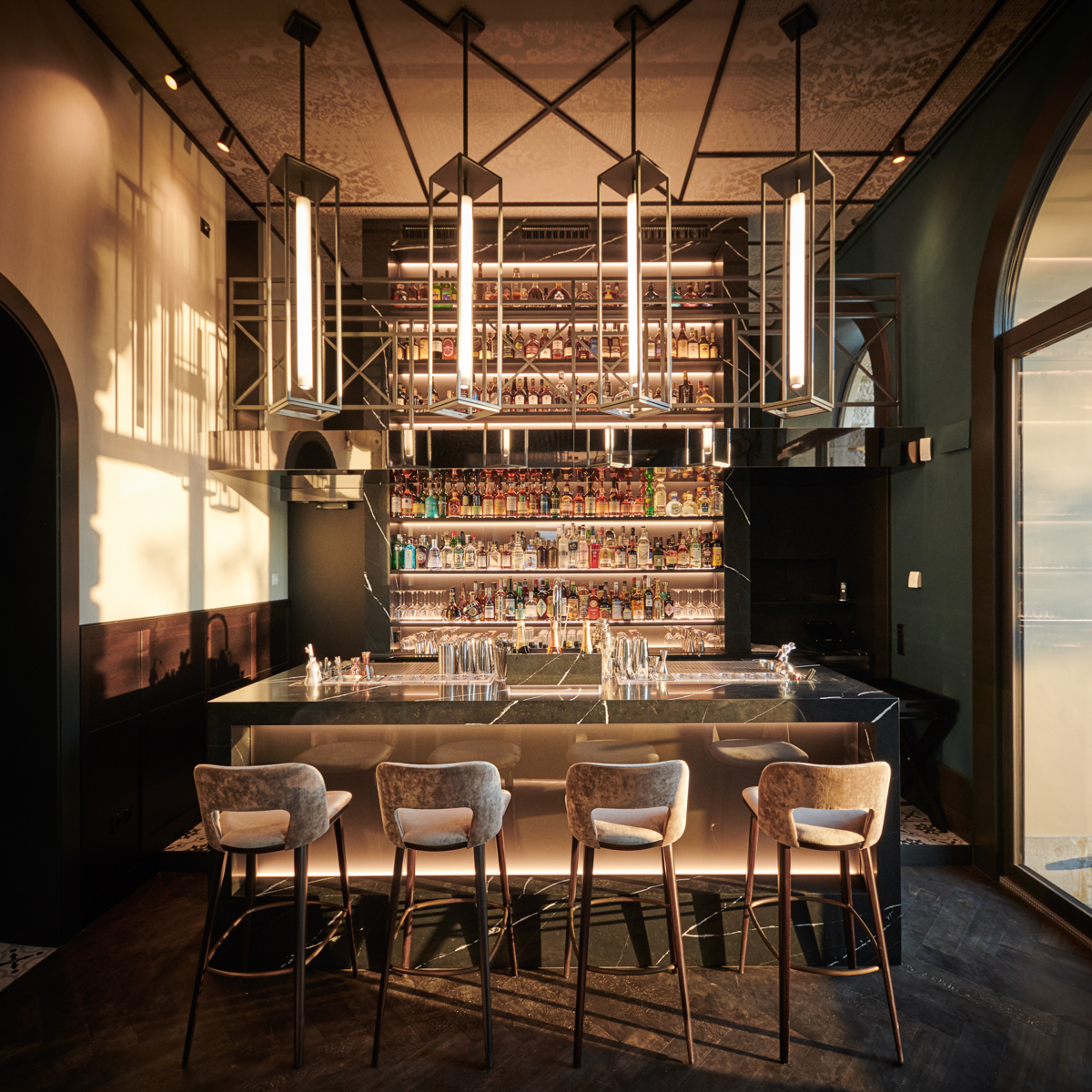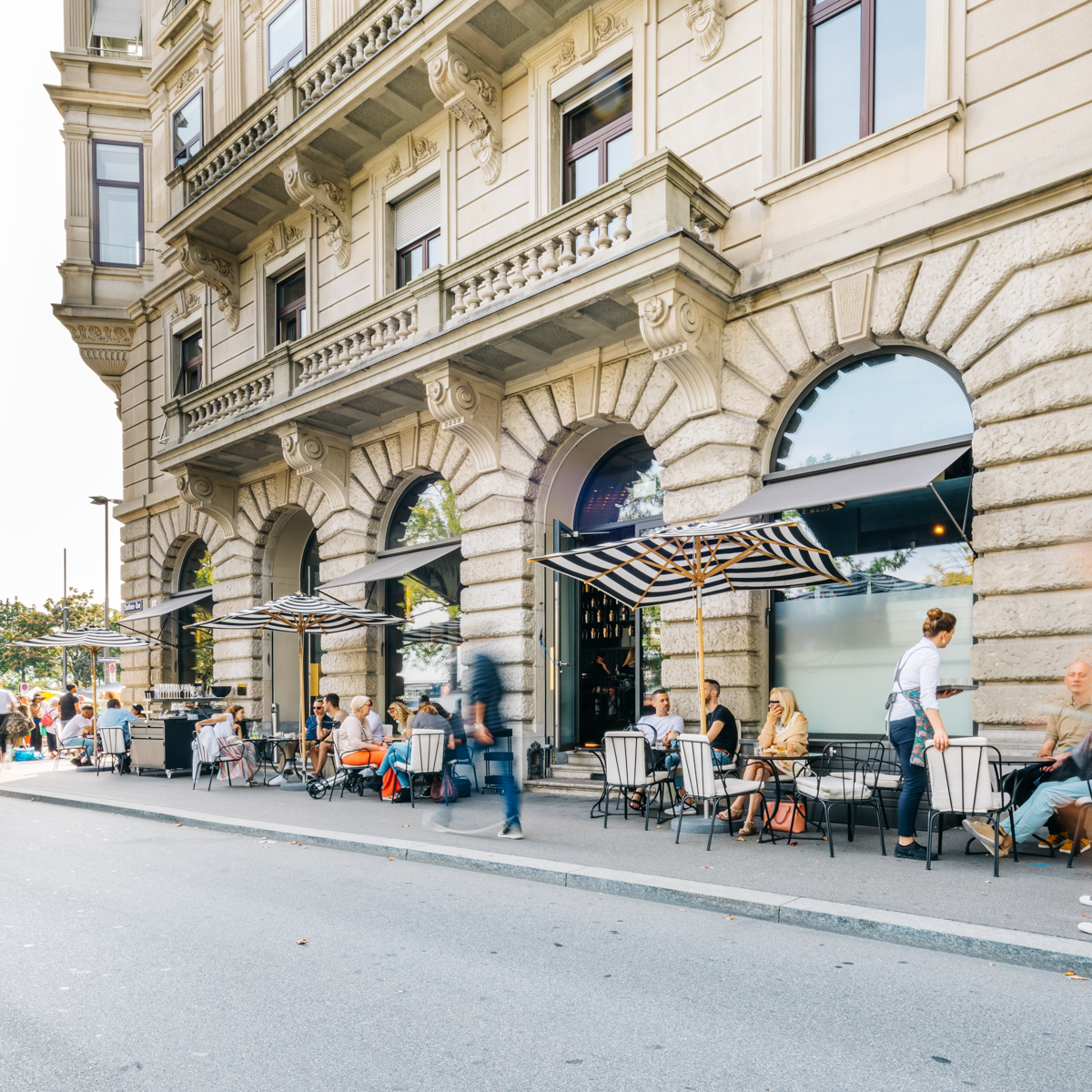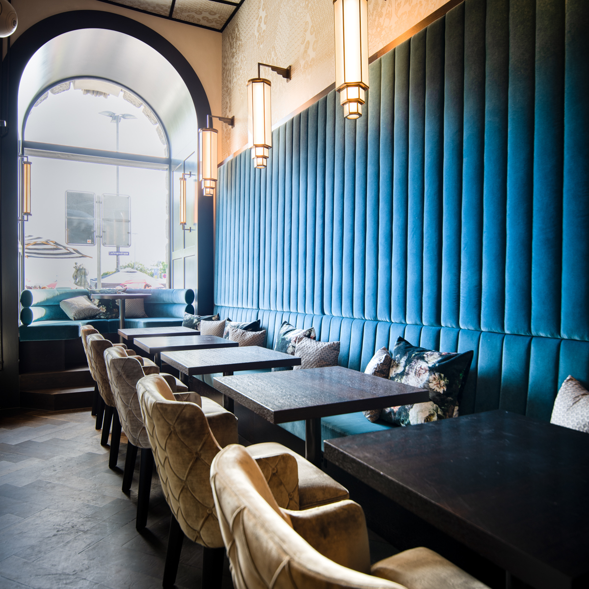 Dabei könnte man auch einfach hinausblicken: Direkt am Stadthausquai an der Limmat gelegen, blickt man von der Bar am Wasser direkt auf den Zürichsee. Überhaupt gestaltet sich das Ambiente mit dunkelblauen Velours-Sofas und einem beachtlichen Lüster an der hohen Decke äußerst gemütlich und geschmackvoll. À propos Geschmack: Auch die Auswahl an Weinen und Champagner kann sich wahrlich sehen lassen. Und zusätzlich zu den feinen Drinks gibt es kleine Speisen und Snacks.