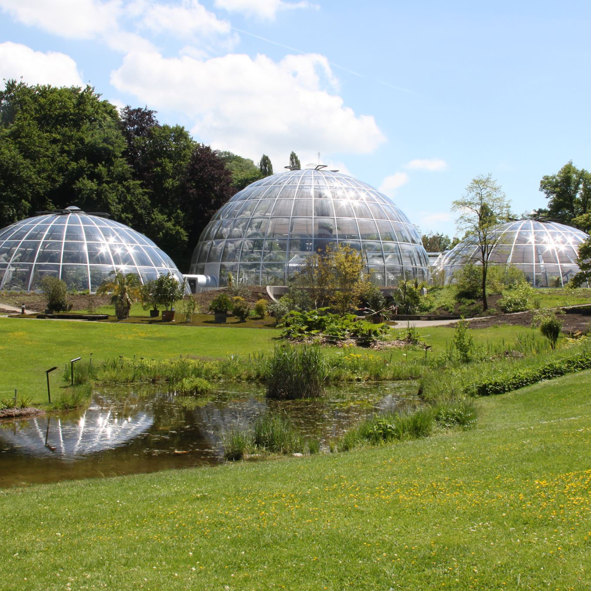 Wahrzeichen des Botanischen Gartens sind seine kuppelförmigen Schauhäuser, welche nach den drei Klimaregionen Tropischer Bergwald, Tropischer Tieflandregenwald und Tropische Trockengebiete angelegt sind. Die drei transparenten Kugeln erheben sich dezent und gleichzeitig mächtig aus der grünen Umgebung und vermitteln für einen kurzen Augenblick das Gefühl am Film-Set von Star Trek Enterprise oder E.T. zu sein.