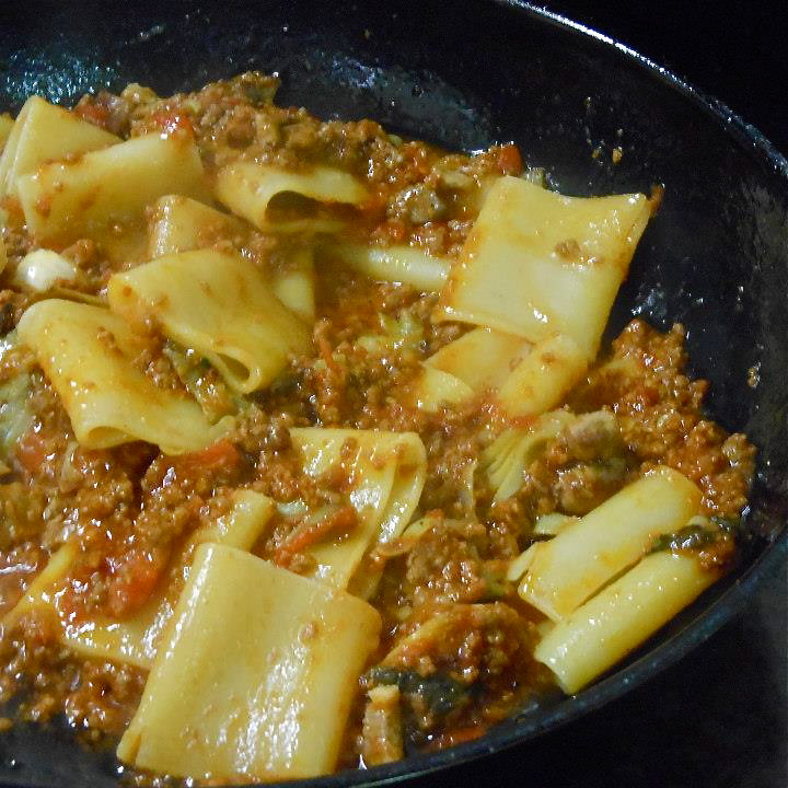 Wir warten also geduldig und landen schliesslich – wie sollte es anders sein – an einem Tisch mit Italienern. Diese waren wohl schon des Öfteren hier und empfehlen uns, unbedingt die Parpadelle "Bologna Mon Amour" zu versuchen. "Die müssen’s wissen", denke ich mir, und bestelle eben diese Pasta als Hauptgericht und zur Vorspeise die "Verdure grigliate con Ricotta e Buffala e Miele e Tartufo bianco".