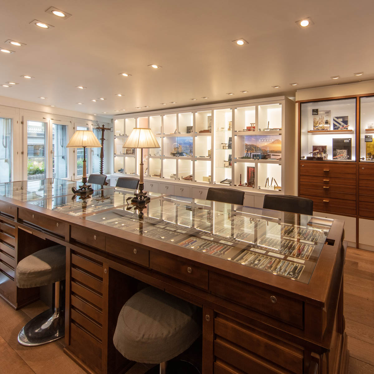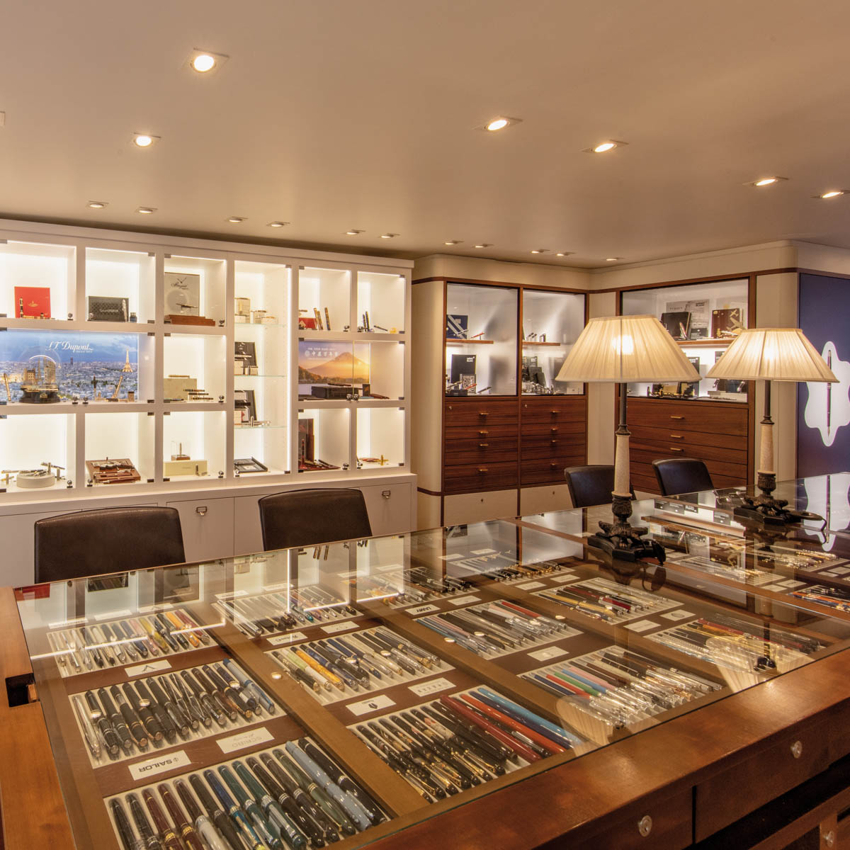 Ein schmucker Laden, in dem man ehrfürchtig wird. Alte, elegante verglaste Regale und Tische, genutzt als Vitrinen für wunderschöne Schreibgeräte, für Kugelschreiber, Tintenroller, Füllfederhalter mit Patronen oder jenen, bei denen man die Tinte noch aus einem Tintenfässchen aufzieht. Der eine aus Nussbaum oder Horn, der andere von einem Künstler gestaltet oder farbverliebt lackiert, der dritte in einer limitierten Version.