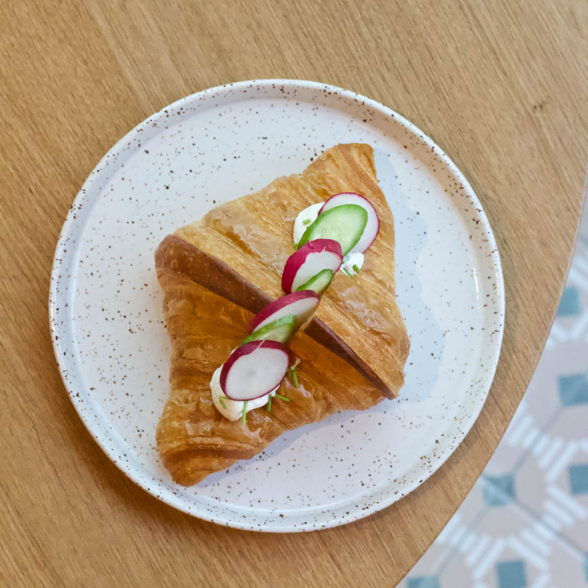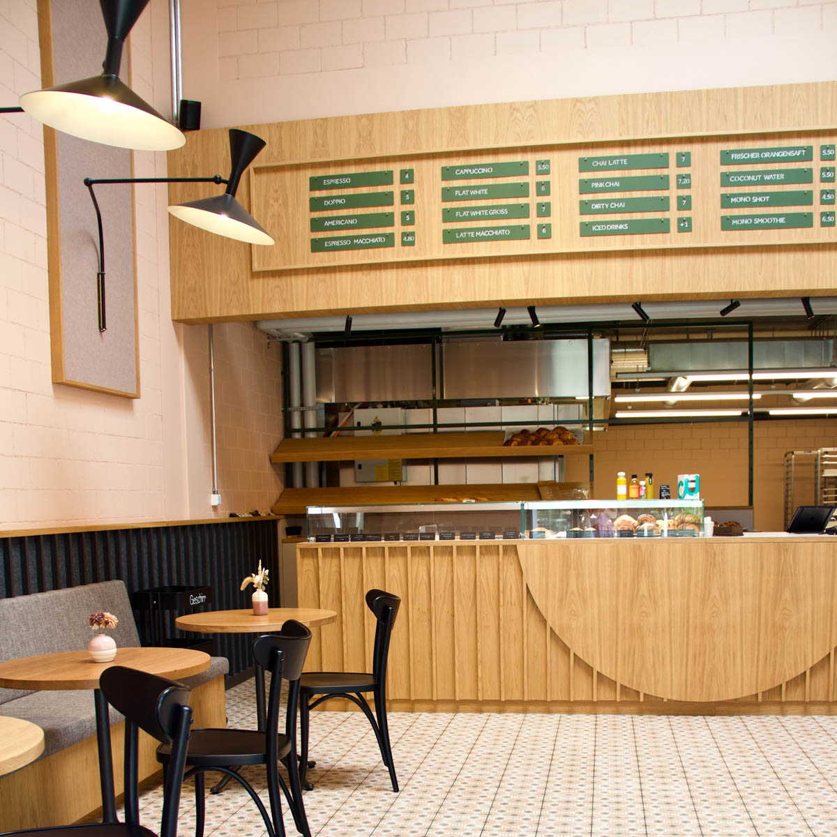 Gedeckte Farben, ein bezaubernd schöner Fliesenboden, ein charmanter Holztresen mit Espressomaschine und Co. sowie eine kleine gläserne Auslage bestimmen den kleinen Gastraum. Und dort warten sie darauf, dass man ihnen nicht widerstehen kann: feinste Croissants und Pains aus Chocolat, entzückende Zitronentartlettes und Choux, sowie kleine herzhafte Köstlichkeiten und anderes Feingebäck in Perfektion.