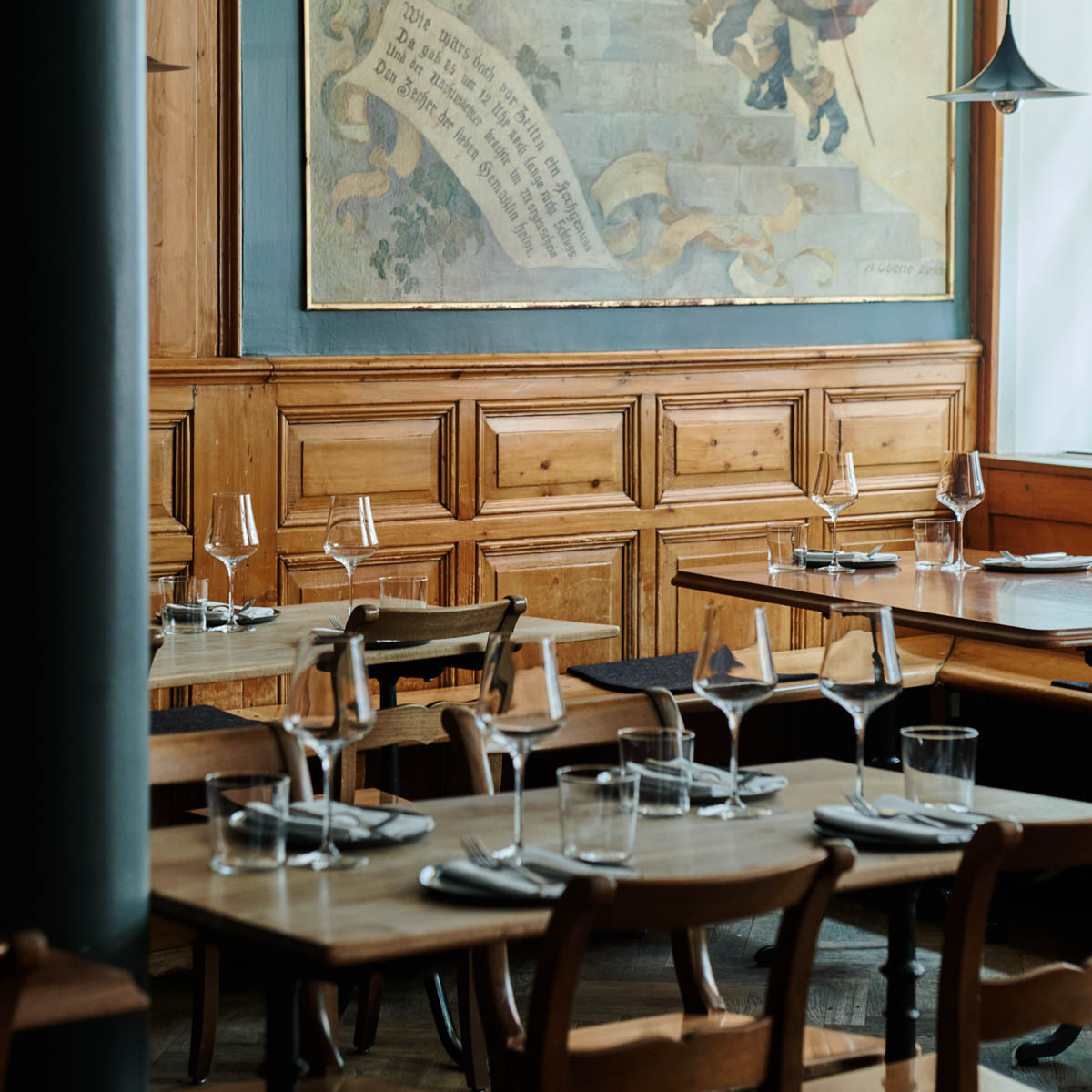 Was auf den Tisch kommt, bestimmen die Saison und die Märkte am Helvetia- und Bürkliplatz, ohne dass dieser Ansatz dabei zum Dogma wird. Und so kredenzt man in der historisch anmutendenen Gaststube im gemütlich-rustikalen Ambiente unterschiedliche Kreationen zum Teilen und auf Wunsch ein 5-gängiges Überraschungsmenü. Zum Lunch tischt das Team ein paar einfachere Speisen und Highlights aus der Abendkarte auf.