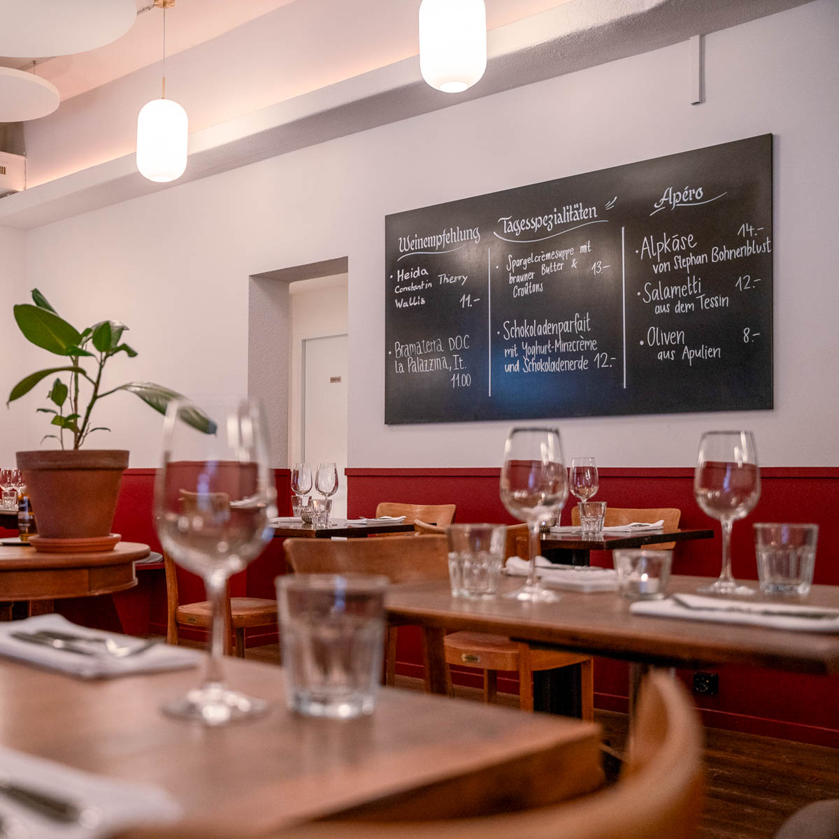 Die Teller sind dabei gleichermaßen zurückhaltend wie geschmackvoll angerichtet und einer köstlicher anzusehen als der andere. Vom aufmerksamen Service werden sie dann an die einfachen, aber schönen Tische gebracht. Der Plan ist also aufgegangen und ein Kosenamen durchaus angebracht, denn hierher bringt man alle nahestehenden und liebgewonnen mit grösstem Vergnügen.