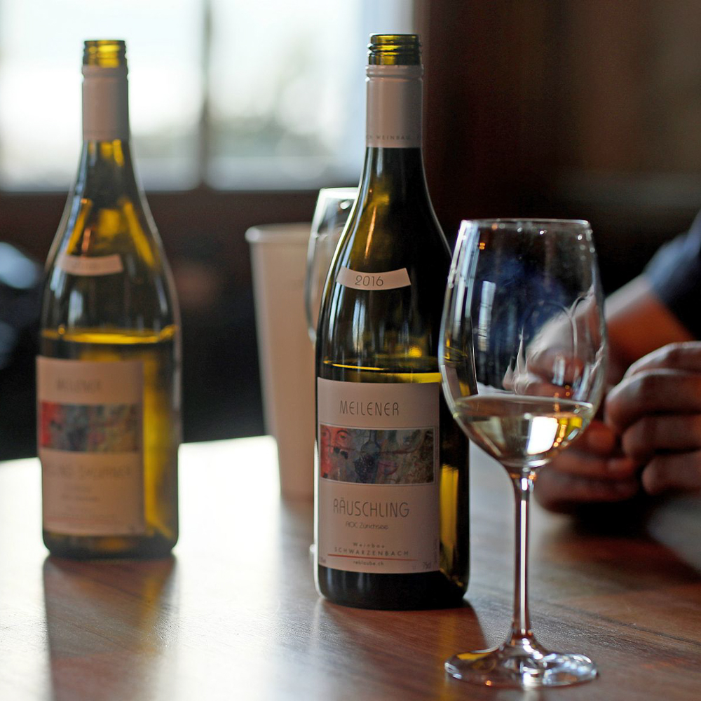 Bei unserem Besuch und der damit verbundenen Degustation stand der 2016er Jahrgang im Vordergrund, von dem bereits einige Flaschen abgefüllt wurden und zum Verkauf parat stehen. Die Weinkenner nickten sich bei der Verkostung verheissungsvoll zu. Der letztendlich warme Herbst habe alles gerettet. Alain Schwarzenbach, der das Weingut seit 2016 gemeinsam mit seiner Frau Marilen Muff führt, spricht von "Vollertrag" und "gesunden, reifen, homogenen Trauben". Der Räuschling liege in einem tiefen PH-Bereich.