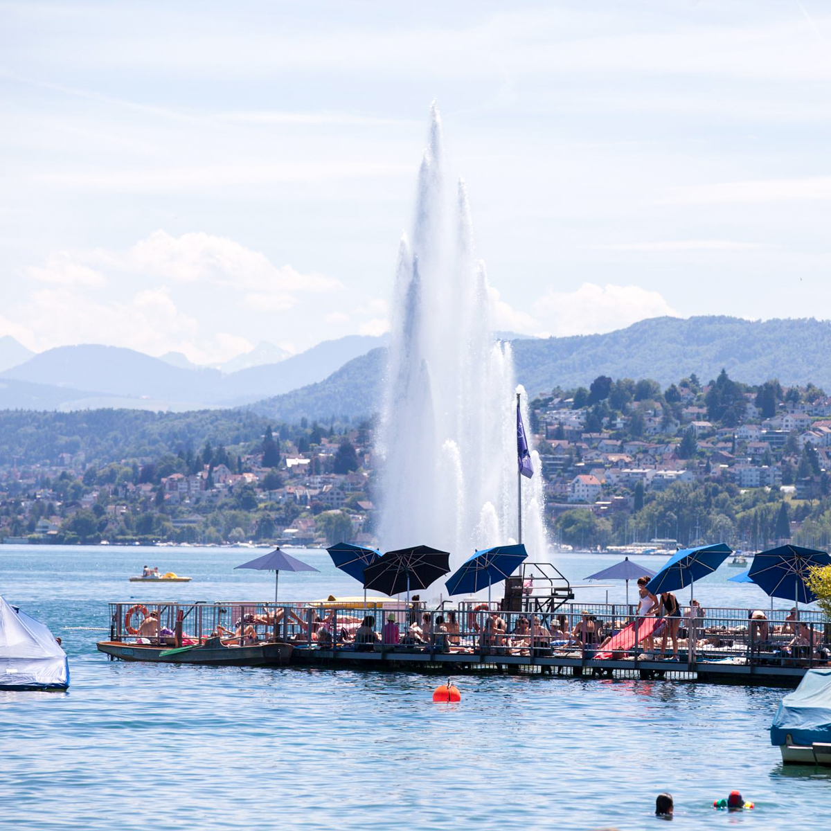 Das funkelnde Wasser direkt vor der Nase, die majestätischen Hügel der Alpen in weiter Ferne und die unverkennbare Silhouette der Stadt Zürich in fußläufiger Nähe: Das Seebad Enge, besser bekannt als "Badi Enge", ist ein Postkartenidyll für Schwimmer:innen, Naturfreunde:innen und Sportbegeisterte.