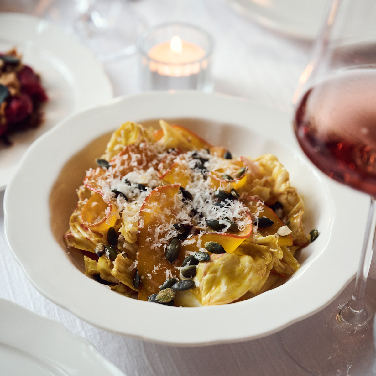 Die Küche verantwortet Andrea Vailati, ein Italiener, der die Aromen des Mittelmeers von klein auf verinnerlicht hat. Seine Handschrift ist unverkennbar: hausgemachte Pasta in klassischer Form, die mehrmals pro Woche frisch hergestellt wird. Dazu Fisch, Meeresfrüchte, saisonales Gemüse und Olivenöl, Käse und Fleisch – stets mit Respekt vor dem Produkt, handwerklich und schnörkellos. Es geht um vertraute Gerichte mit einem modernen Twist, die gleichzeitig unkompliziert und raffiniert sind.