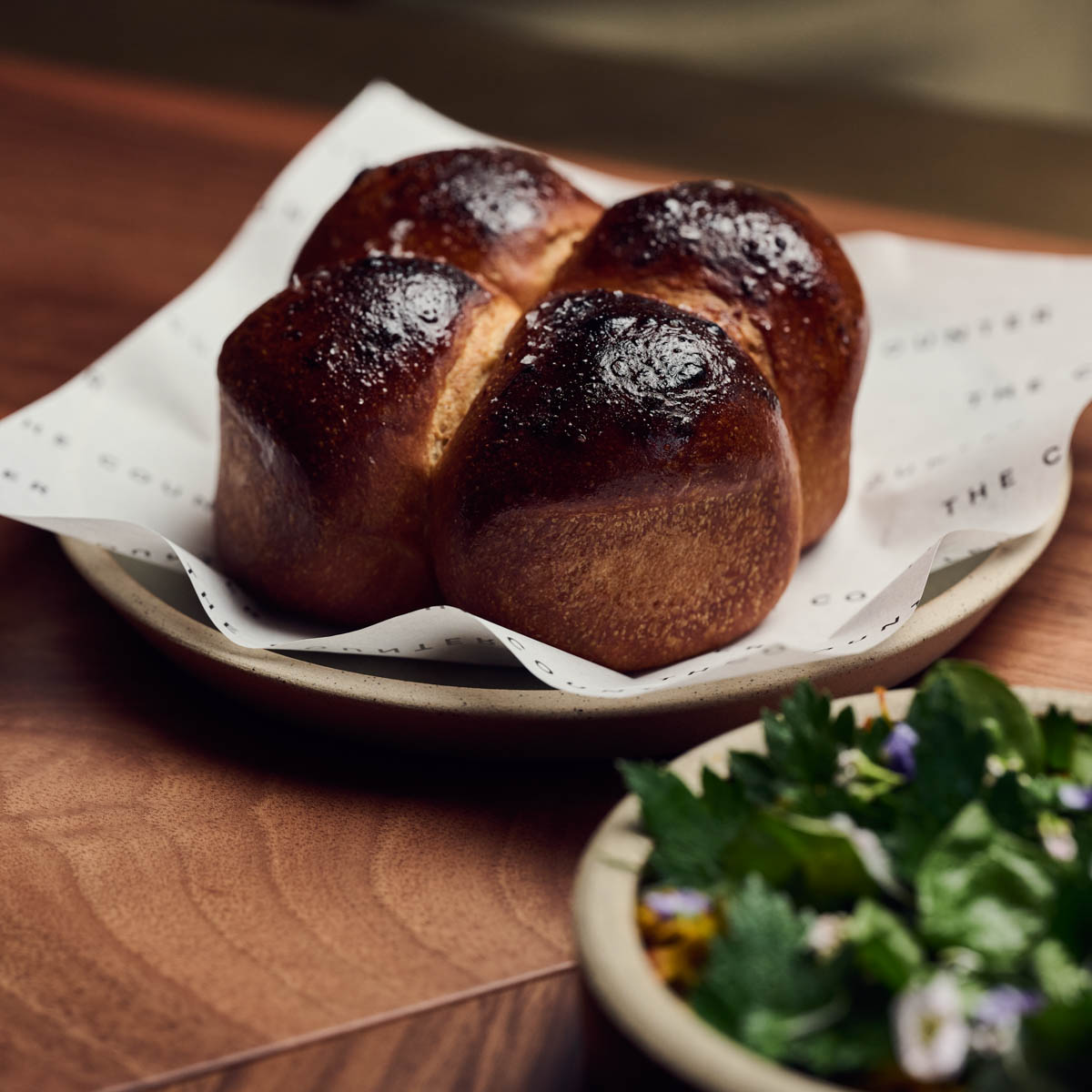 Genug der Wortklauberei. Der Tresen im The Counter ist der Ort des Geschehens. Das Gros der 23 Plätze befindet sich ebendort, bequeme Barhocker mit Lehne. „Chef’s Theke“ wird der umlaufende Tresen genannt, da man ganz nah bei Chef Mitja Birlo, Koch-Genie mit 2-Sterne-Vergangenheit, und Sommelière und Ehefrau Florentina sitzt und miterlebt, wie in der offenen, ruhigen und fokussierten Küche Gaumen-Großartiges entsteht.
