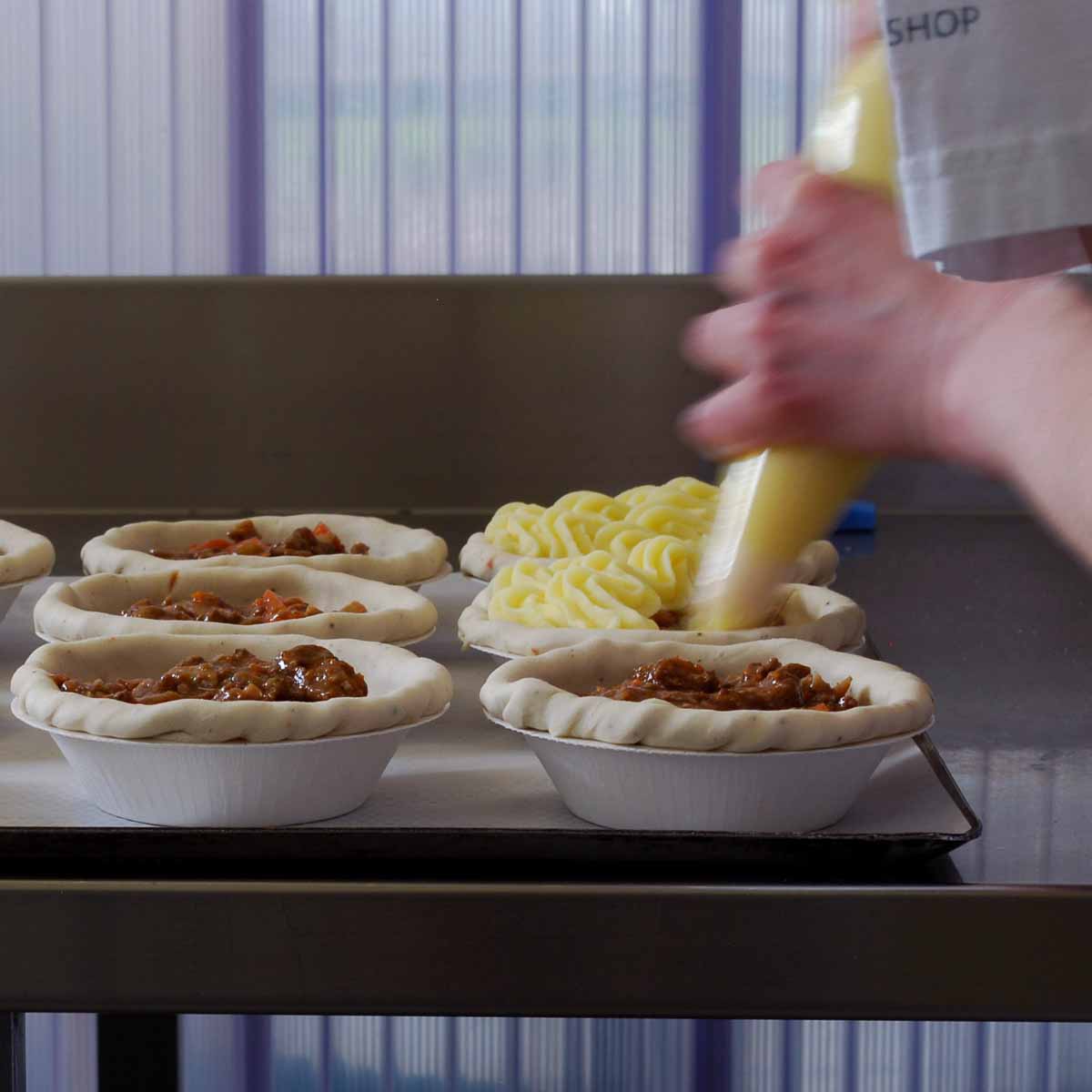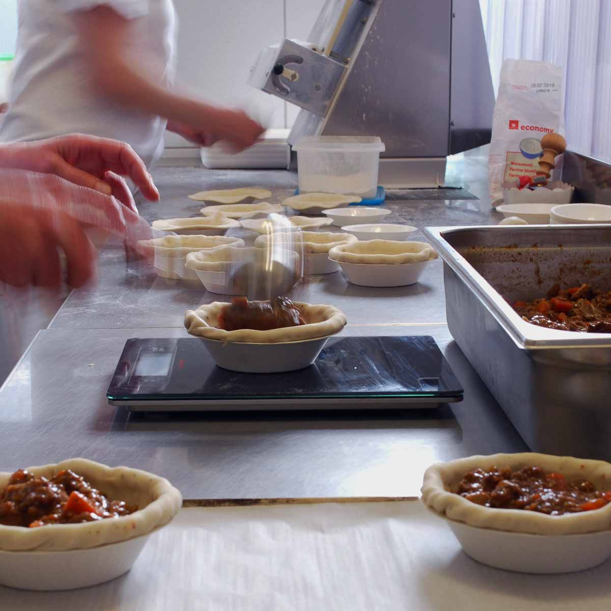 Eine grosse Auswahl an wechselnden, frischen Pies, darunter auch eigene Kreationen mit lokalem Twist, erwartet die Kunden im The Pie Shop: Ein deftiger "Shephard’s Pie" mit Schweizer Alpenlamm und gehacktem Rindfleisch beispielsweise, der angereichert mit Karotten und Pilzen sowie einer Decke aus frischem hausgemachtem Kartoffelstock zur vollwertigen Mahlzeit wird.