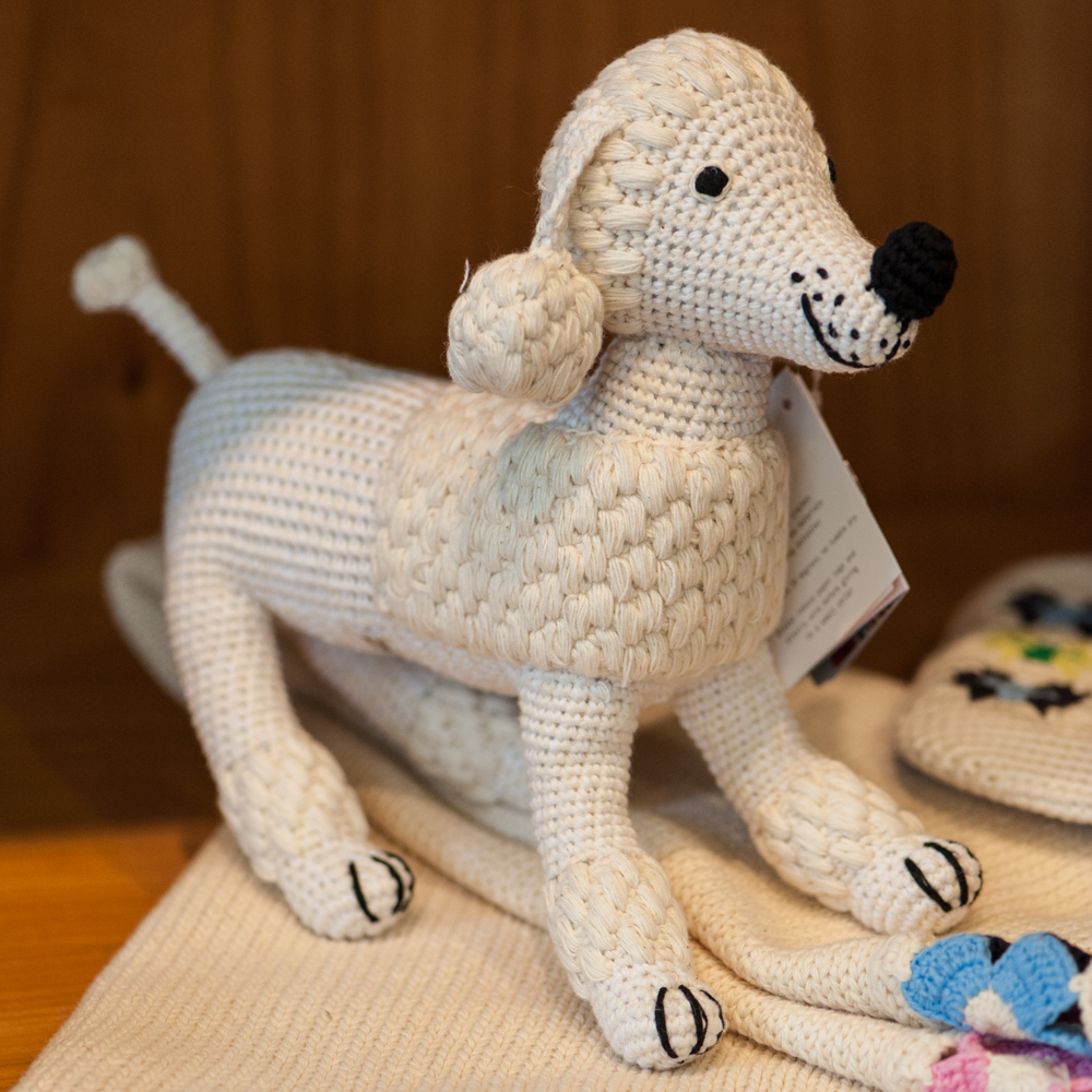 Während ich noch in Gedanken in meiner eigenen Kindheit schwelge, beginnt Martina Brügger, die sympathische Geschäftsführerin der Vier Linden Boutique, mir eine Auswahl ihrer schönsten Produkte vorzustellen. Darunter sehr hochwertige und formschöne Holzspielsachen der Marken Vilac und Ostheimer, traumhaft schöne und in Handarbeit gehäkelte Puppen, Spielsachen und Tiere von anne-claire petit sowie eine Blumenpresse, Puzzles und Jojos im nostalgischen Retrostil von Moulin Roty. Allesamt wunderschöne Ideen für die nächsten Kindergeburtstage!