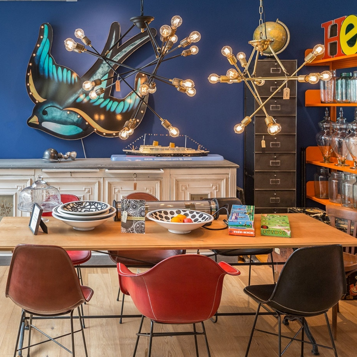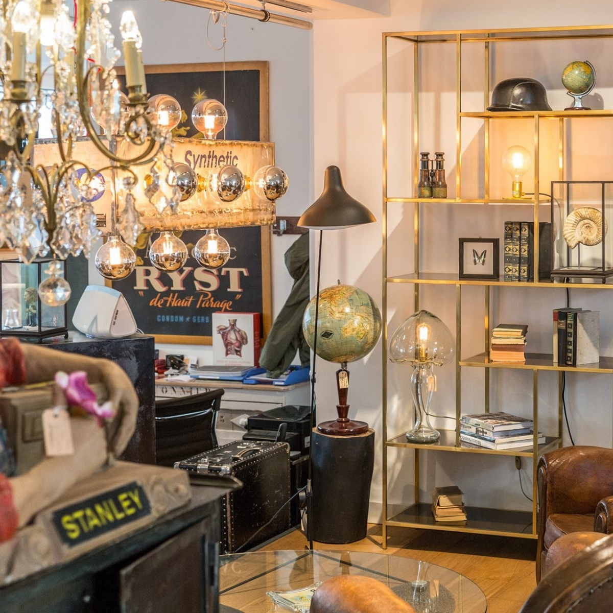 Angefangen hat alles eindeutig mit Leidenschaft und einer gewissen Schwäche für Coolness. Auf Reisen nach Frankreich und Italien suchte das Inhaber-Duo mit sicherem Gespür nach gut erhaltenen Trouvaillen, die die Patina der Zeit tragen. Das Ergebnis im Laden sind grosse Blechschilder an der Wand, Kristall-Geschirr und Ammoniten auf den Regalen... . Das Sortiment wird zudem mit Kollektionen aus kleinen Manufakturen ergänzt – wie beispielsweise Metall-Hängelampen und Teppichen mit Antik-Akzenten.