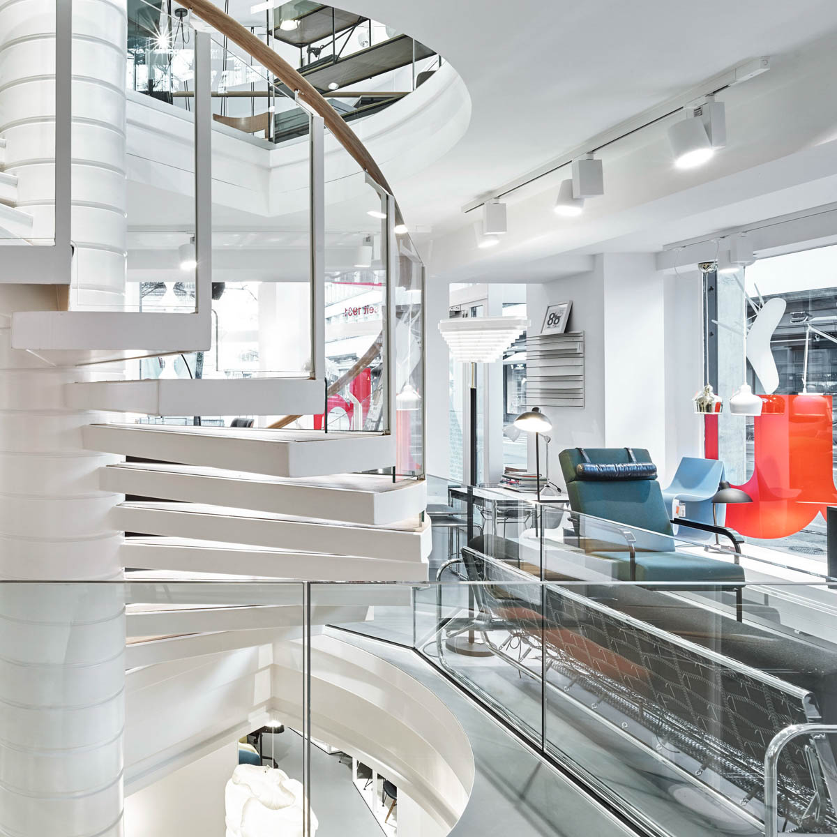 Doch auch den lichtdurchfluteten Showroom von Wohnbedarf mit zahlreichen ansprechend gestalteten Wohnkonzepten sowie der Originaltreppe von Marcel Breuer sollte man einen Besuch abstatten, möchte man doch am liebsten direkt selbst einziehen.