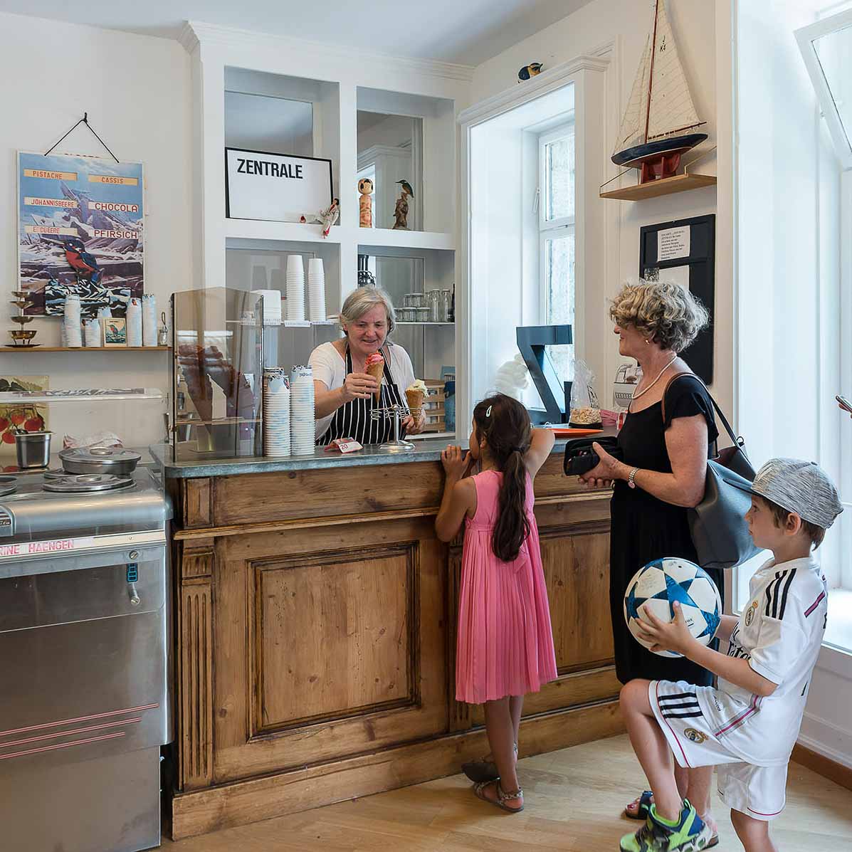 Mit der Zentrale für Gutes erschuf Tine Giacobbo jedoch nicht nur eine Gelateria im Sommer und eine Suppenküche im Winter, sondern auch einen Quartiertreff. Giacobbo grüsst den Grossteil ihrer Kunden – vor allem die Kinder unter ihnen – mit dem Vornamen. Wer sie kennt, verweilt nicht nur deshalb gerne auch mal länger.